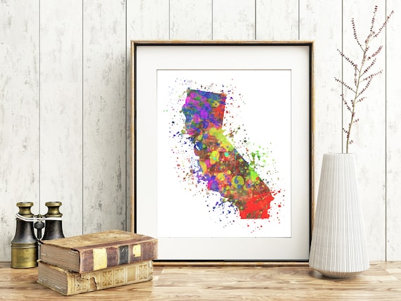 California Map Print Watercolor Paint Splatter Ca Cali Etsy